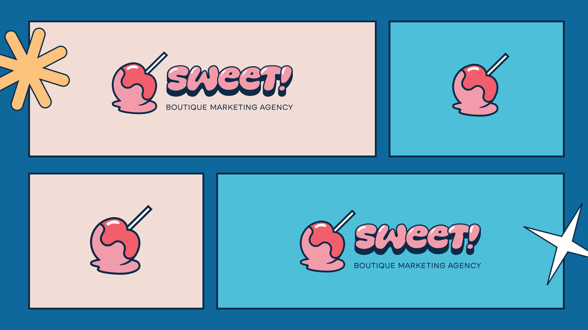El logotipo de Sweet! combina una estética divertida y llamativa con un diseño inspirado en el estilo urbano y la energía vibrante de Nueva York. La tipografía redondeada y amigable, junto con el elemento visual de una manzana acaramelada, evocan una sensación de cercanía y creatividad, ideal para una agencia moderna y dinámica.