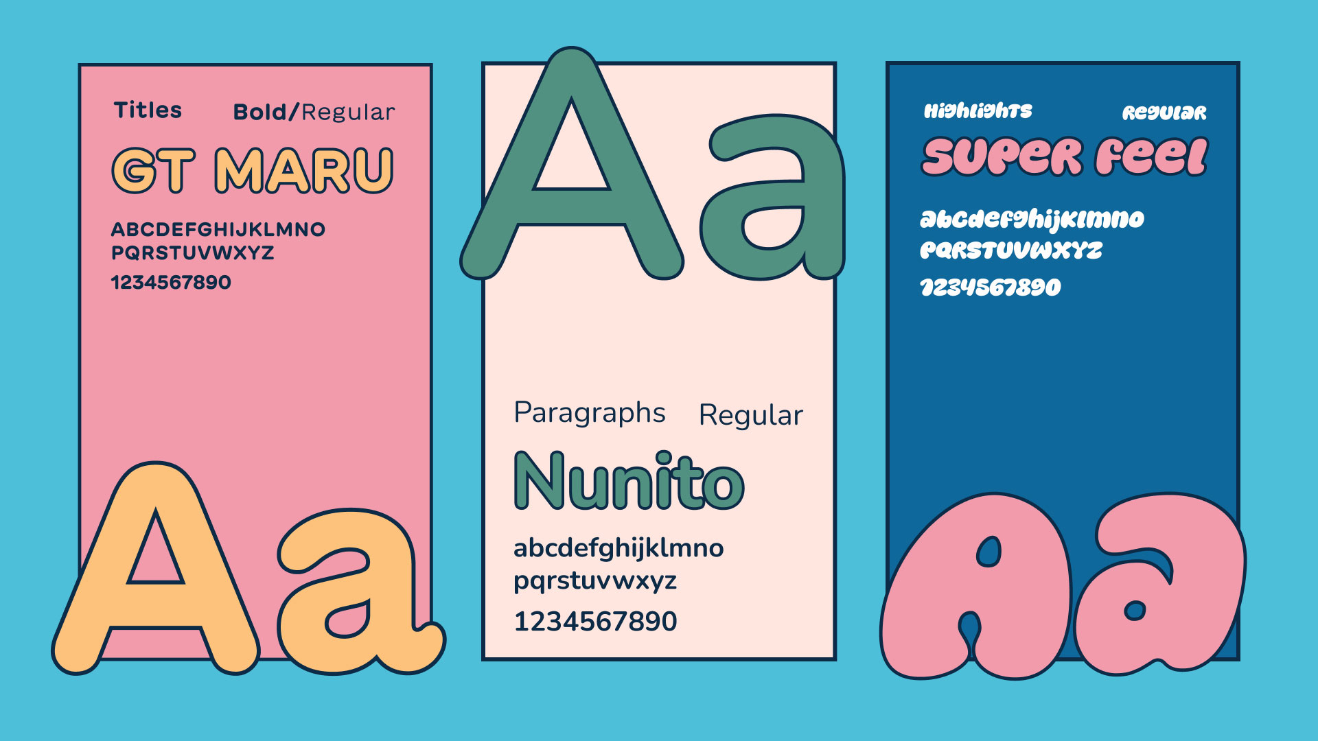 - GT Maru (Títulos y logotipo): Una fuente redondeada y moderna, que refuerza la identidad amigable.
